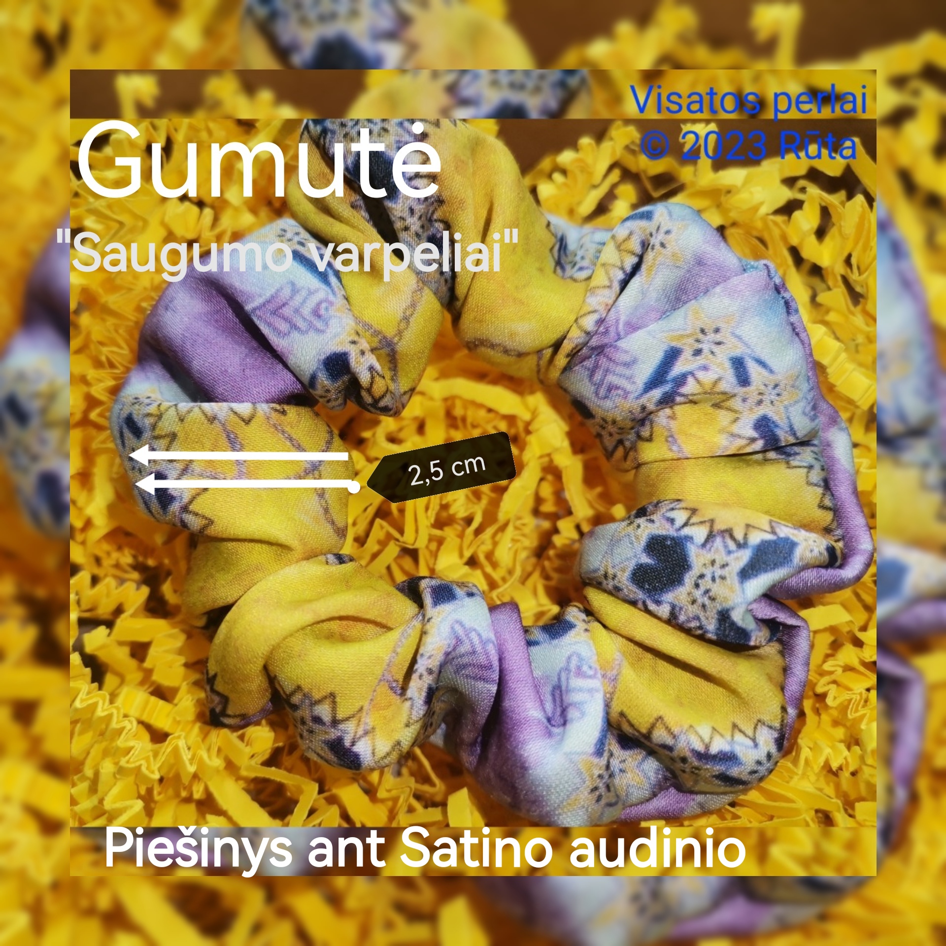 Su piešiniu „Saugumo varpeliai” ant satino audinio.